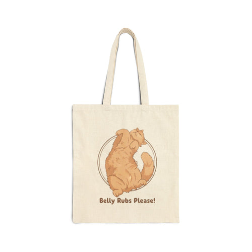 Cotton Tote Bag — "Belly Rubs Please!" Orange Cat Canvas Shopper